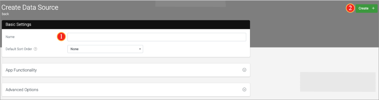 Note: Default Sort Order and Advanced Settings are optional and can be configured once the data source is populated if needed.